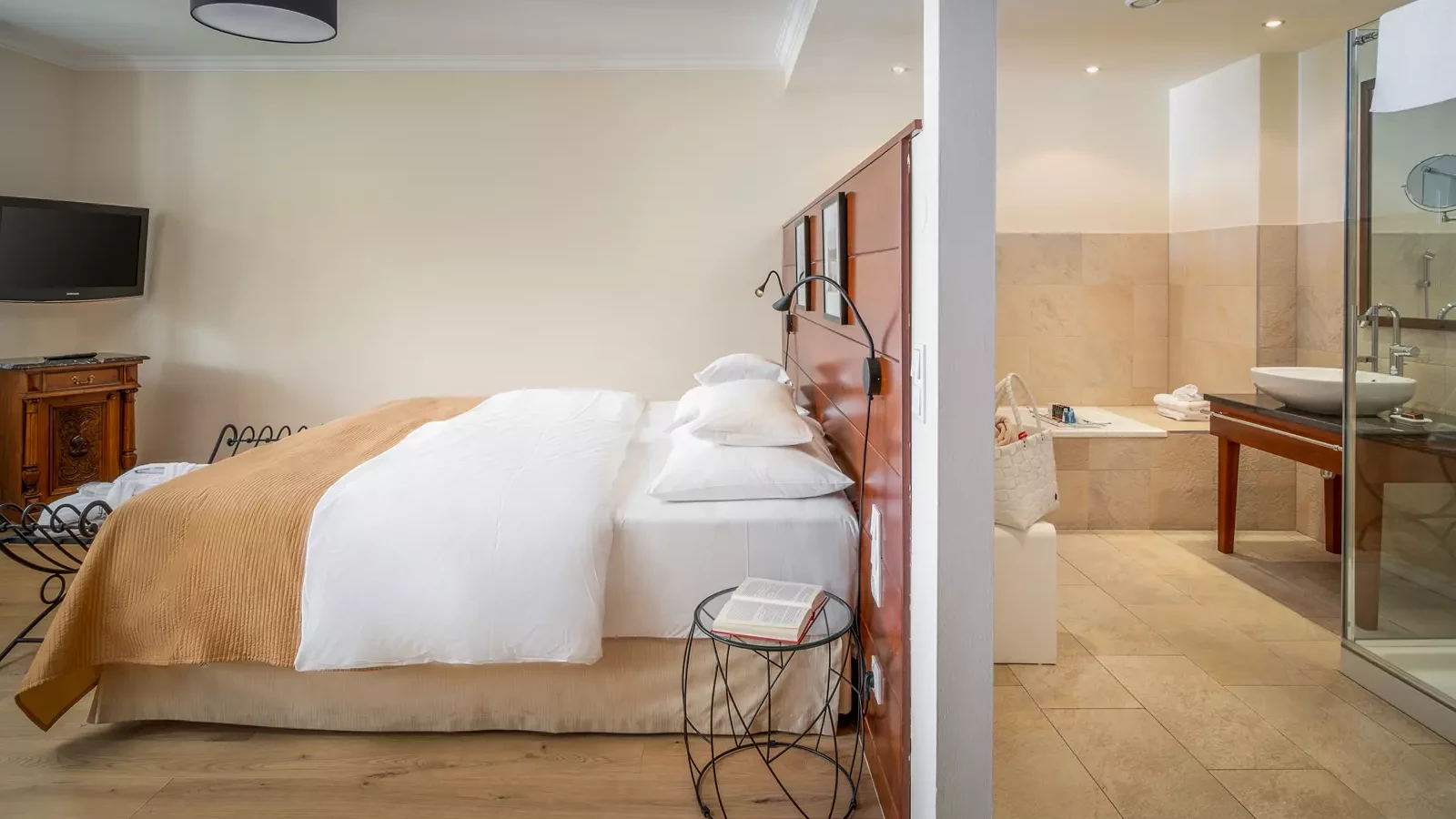 Unsere Doppelzimmer in der Seevilla vereinen Moderne mit elegantem Komfort. Ideal, um laue Sommerabende auf dem Balkon zu genießen.